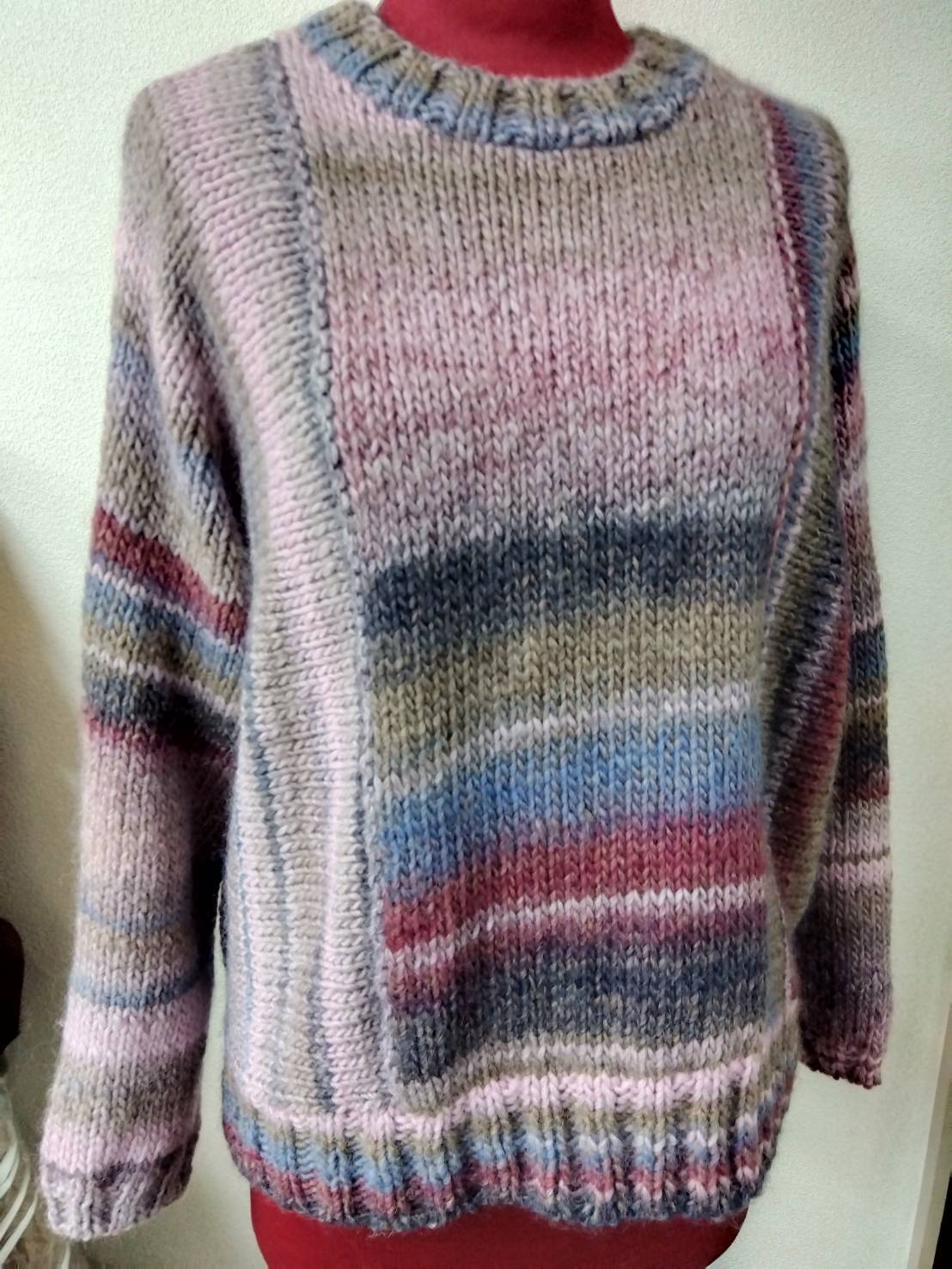今日の新作はスキー毛糸で編む棒針編みのセーターです。